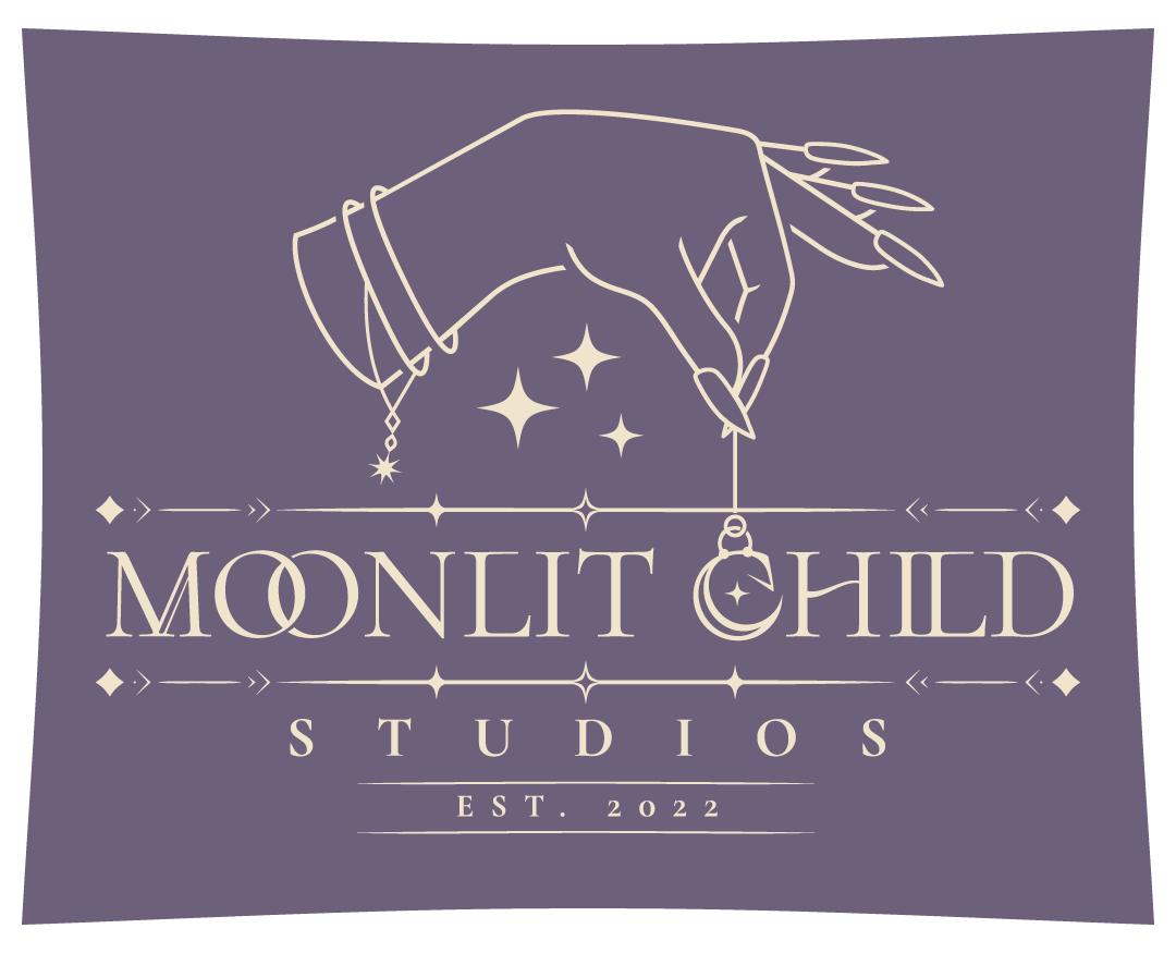 — This is the core primary color palette for Moonlit Child Studios, these are the colors that define the overall feel of the brand. Any materials containing usage of brand assets are recommended to have present at least 1 of 3 colors in any given design