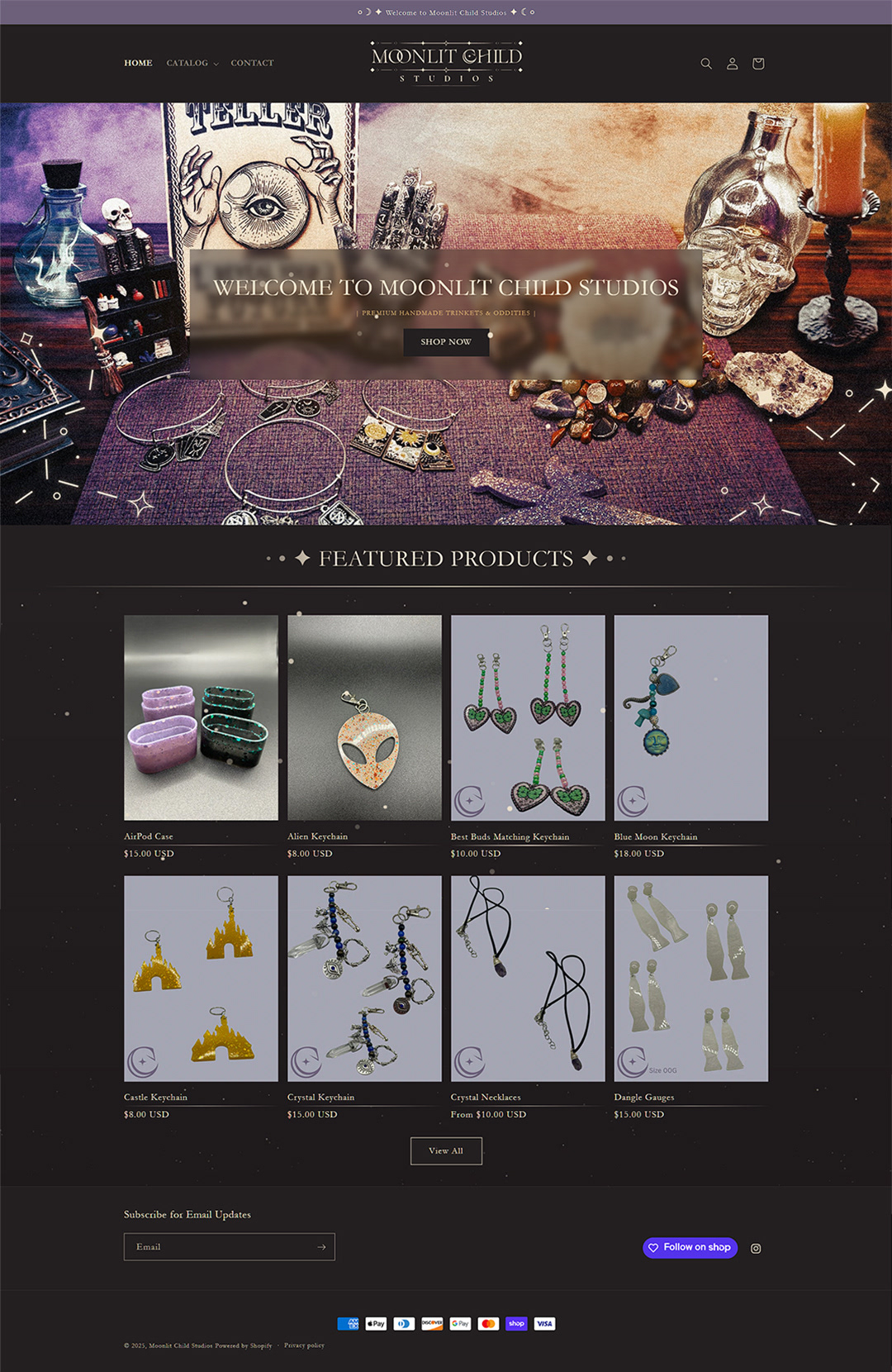 — The design goal for the overall brand visuals were to blend together a very clean, modern style, with a tight influence of tarot-inspired, mystical imagery. This fits in-line with the style and alt-nature of the products the business produces. It was important when strategizing concepts to keep the identity personable to the founder, Sarah.